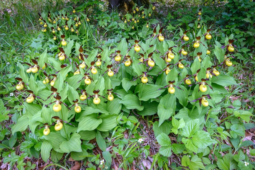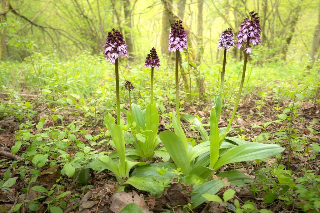 Systematisch wurden verschiedene Waldtypen vorgestellt: lichtdurchflutete Niederwälder mit früh blühenden Arten wie Manns-, Purpur- und Blassem Knabenkraut, Dolomit-Kiefernwälder mit spezialisierten Orchideen wie Fliegenragwurz, Waldhyazinthen und Rotem Waldvögelein sowie dunklere Buchen- und Mischwälder mit zahlreichen Ständelwurz-Arten. Besonders hervorgehoben wurden seltene und gefährdete Arten wie das Kriechende Netzblatt, die Korallenwurz oder das Kleine Zweiblatt, die stark unter Klimawandel und Strukturveränderungen leiden.