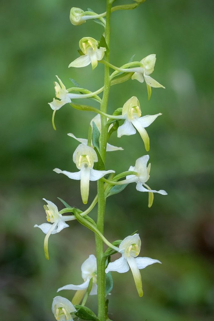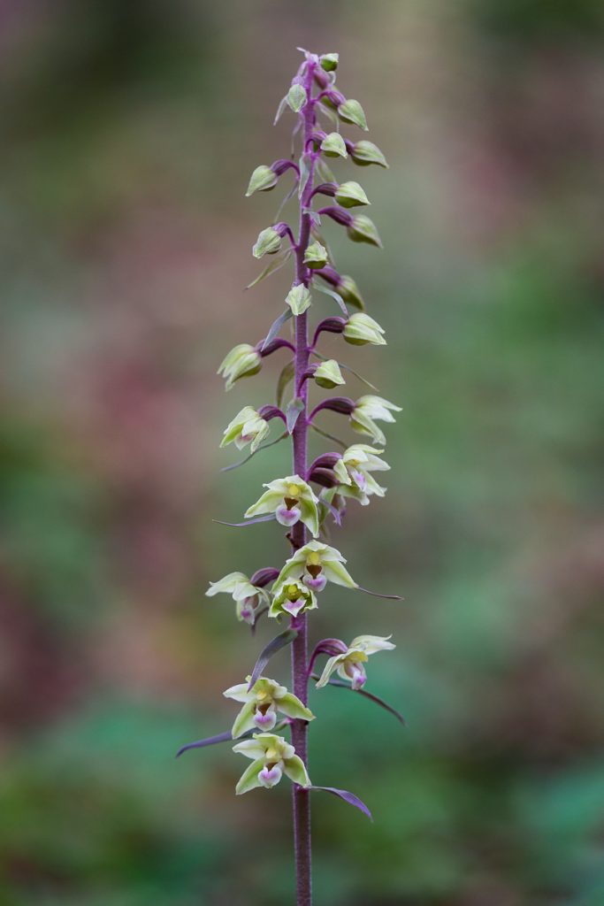 Grünliche Waldhyazinthe (links), Platanthera chlorantha, in den Wäldern auf der Albhochfläche der Fränkischen Schweiz noch weit verbreitet, aber durch Abholzung und Waldumbau gefährdet. Elbe-Ständelwurz (Mitte), Epipactis albensis, Maintal bei Bamberg, eine sehr seltene Orchidee, die in periodisch überfluteten Auwäldern von Flusstälern vorkommt. Violette Ständelwurz (rechts), Epipactis purpurata, die Orchidee des Jahres 2026. Sie ist in den Laubwäldern am Albtrauf der nördlichen Frankenalb noch gut verbreitet